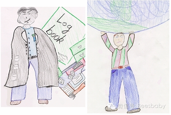 七年级学生詹姆斯对科学工作者的印象:左边是之前“聪明又怪异的人”;右边是拜访了真正的科学家之后“好像超级英雄的人”。