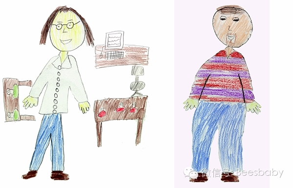 七年级学生阿曼达对科学工作者的印象:左边是之前“白大褂和眼镜”;右边是“条纹套头衫,留着山羊胡”。阿曼达写道:谁知道呢?没准儿我也可以成为一名科学家。