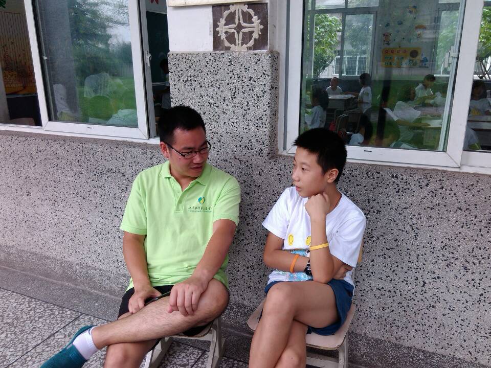 饭后休息的时间,他搬了张小凳子,和我坐在走廊上,在淅淅沥沥的雨声中,缓缓述说去年夏令营发生的点点滴滴。我们就像两个久未谋面的老朋友,没有任何隔阂,亲切如一家人。