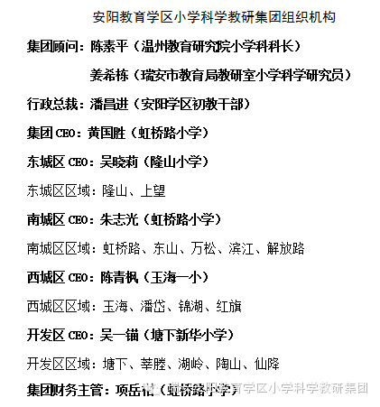瑞安市安阳教育学区小学科学教研大组改组,正式成立“瑞安市安阳教育学区小学科学教研集团”。