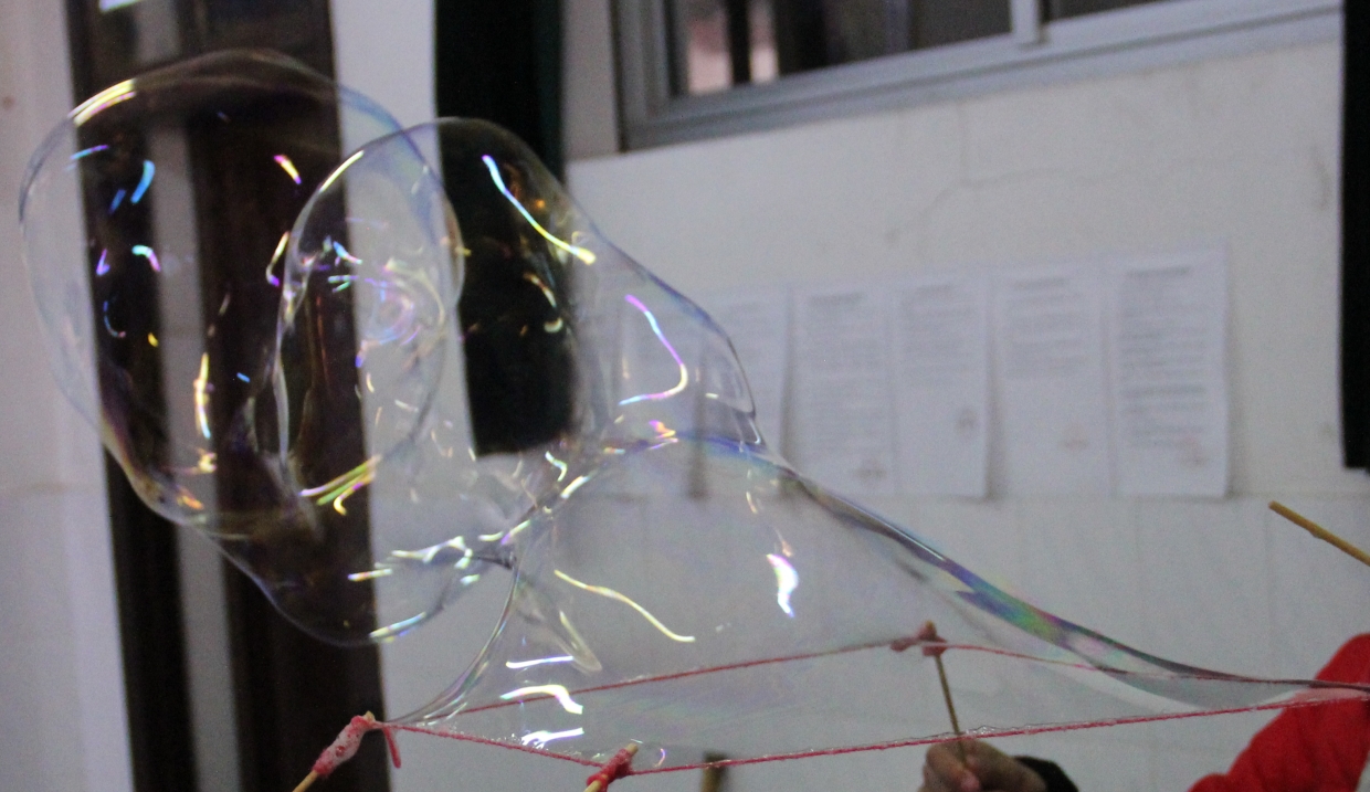4、各小组上演“超级泡泡秀”,教师拍照