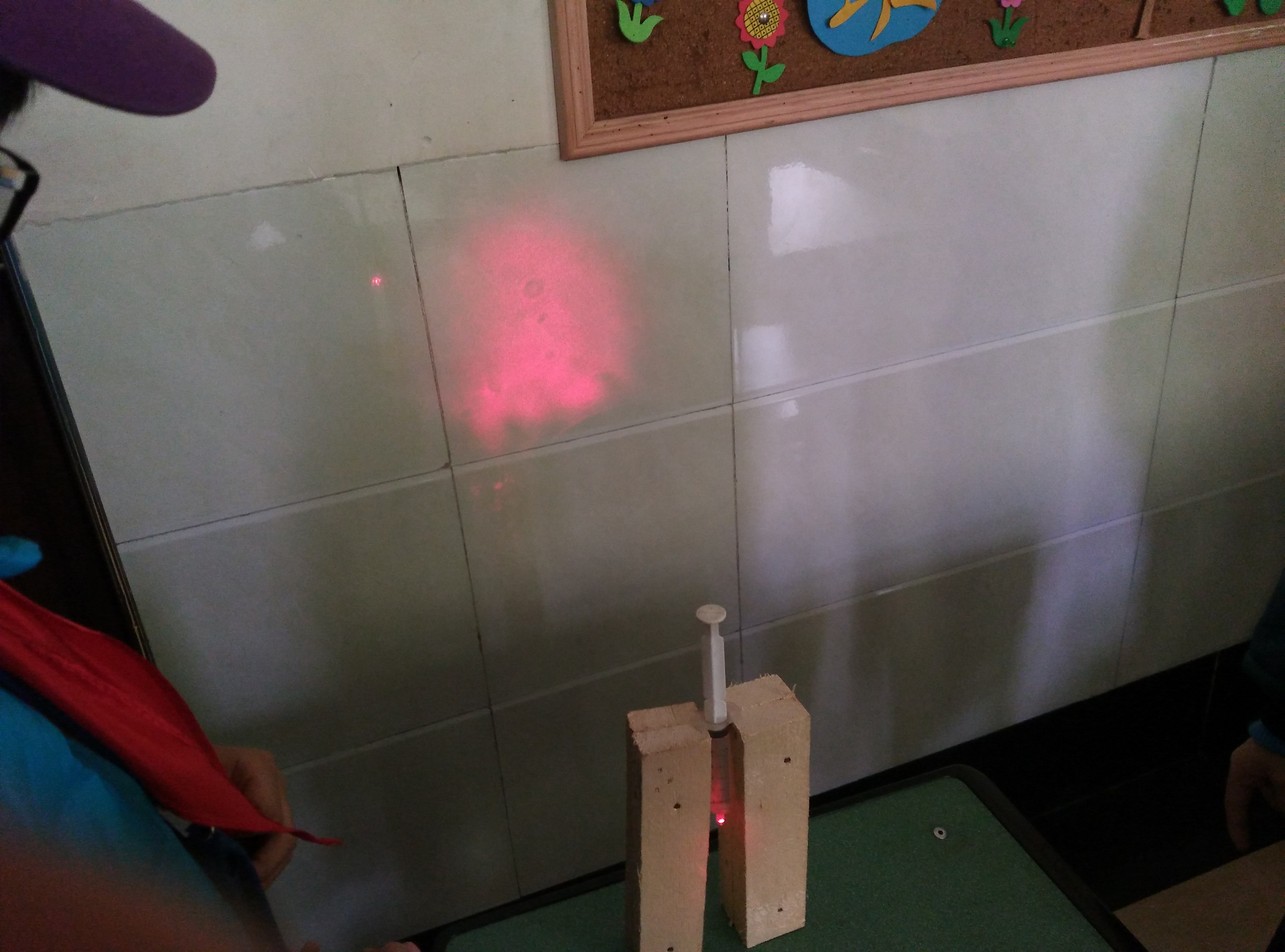 器材: 注射器 激光笔【红色可以,绿色更佳】 小木块