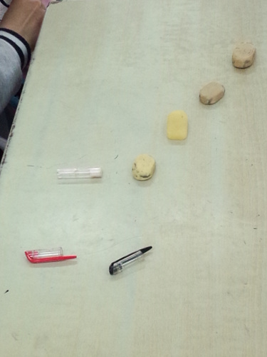 都没上过这个年级的课,书本上介绍的模型每个星球位置的确定和视觉效果的形成影响不知道大不大,看了老师的材料,本来觉得会用粉笔也很有创意,我看里面的粉笔是一样长的,如果把长短不一样的粉笔摆在一起,效果会一样吗?