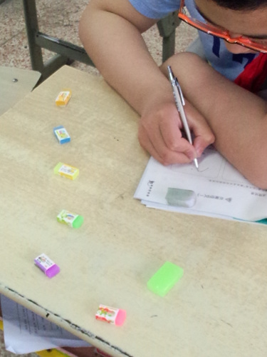 今天,北斗七星教学,我布置让学生用小组同学的橡皮、笔套等,排成一个北斗七星模型,然后布置学生从两个不同角度看北斗七星模型并分别记录。总体来看,已经较好的解决不同观测角度看北斗七星会产生不同效果的教学内容。