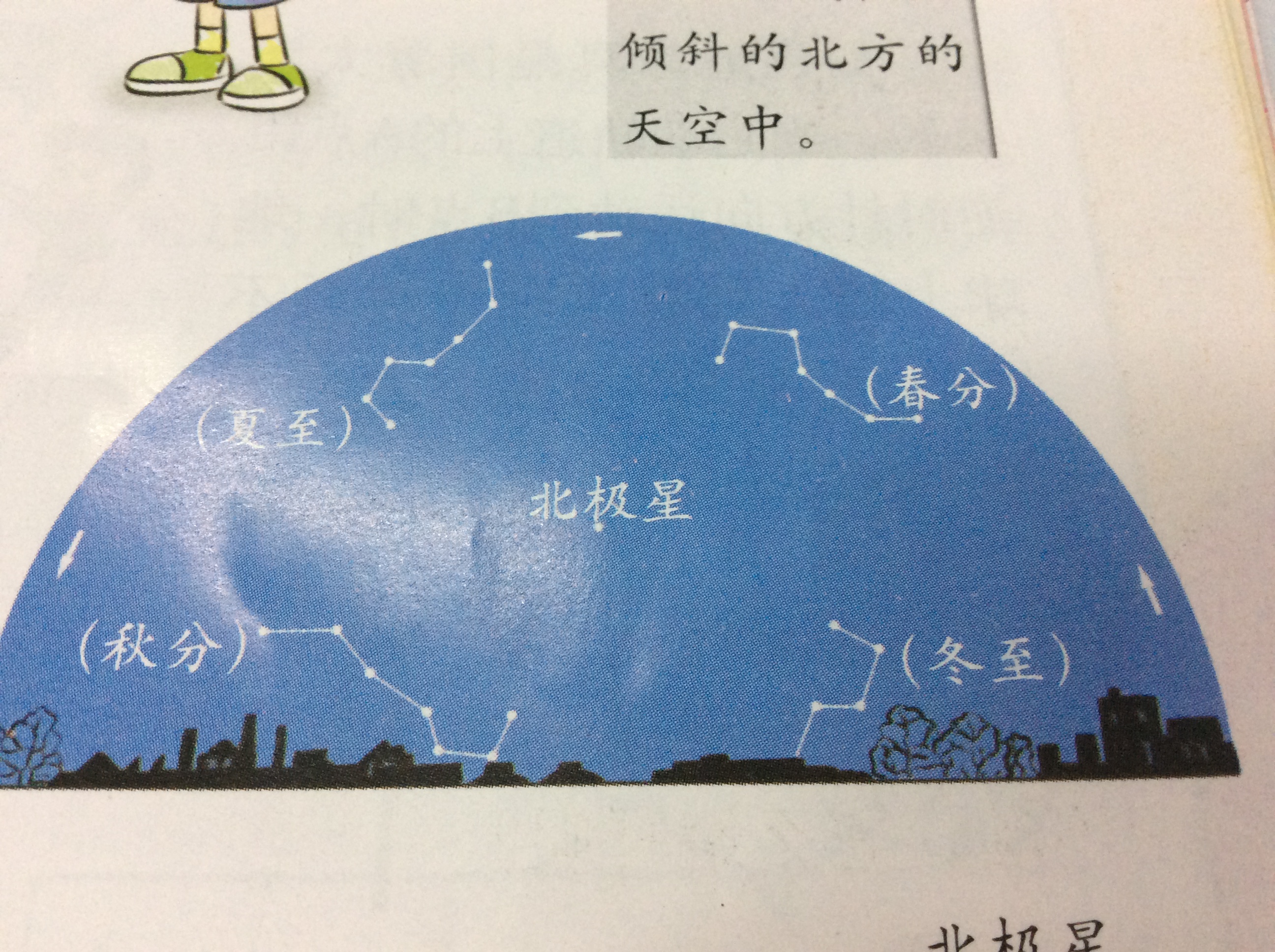 五下教科书的83页的图形我认为是不对的,勺柄的方向夏至和冬至的弄反了,请教各位老师