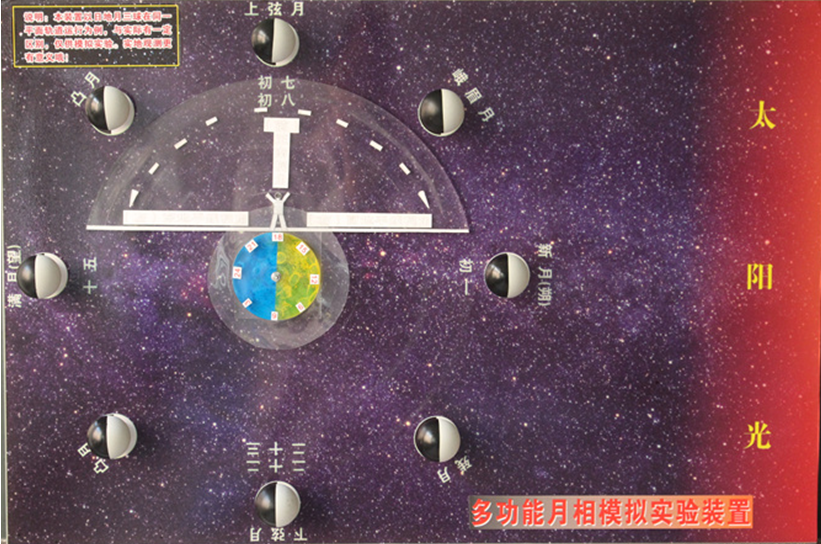 教科版小学科学六年级下册《宇宙》单元,有关于月相变化的实验教学。为了挖掘月相模拟实验的使用效能,在月相变化日地月原理图的基础上,加入地球昼夜时间面、可视范围观察角度面等,以实现多功能、高效、形象而便捷的使用效果。