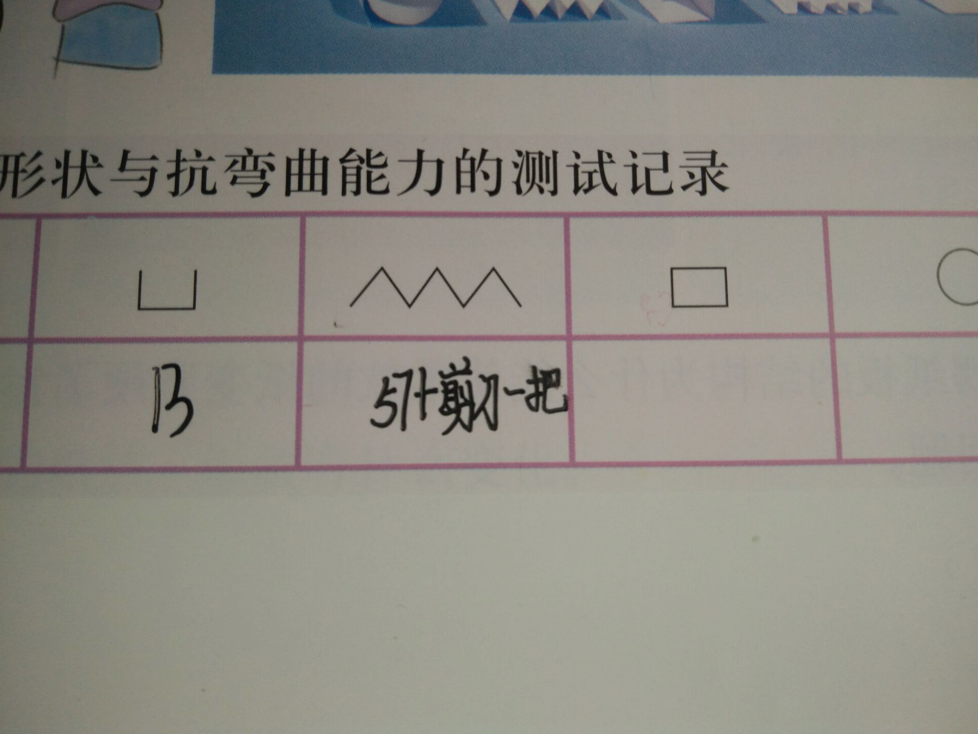 美中不足之处,有两幅图片里面孩子们用到了拱形结构,在这节课里面的各种形状抗弯曲对比实验中,就不是单一改变的条件了。