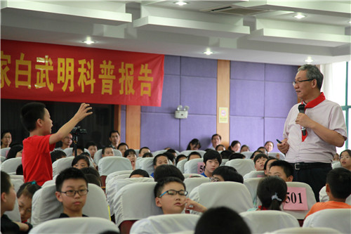 9月21日下午,萧山区高桥小学报告厅里,不时传来掌声和笑声,“为什么火星没有磁场?”“为什么极光只发生在两极?”“为什么大陆会漂移?”......一个个深奥而有趣的问题,吸引着高小的萧山日报小记者和五年级全体同学。原来,中国科学院地质与地球物理研究所研究员、博士生导师白武明教授正在为五年级的同学们做《科学就在我们身边》的科普讲座,给师生们分享了一场科普盛宴。
