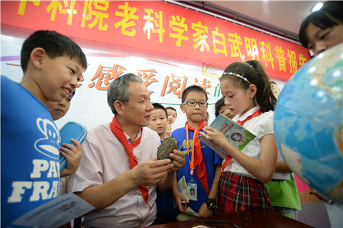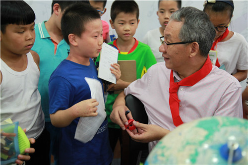白教授没有一点架子,演讲中亲切鼓励孩子们:“欢迎你们随时举手发言,多问‘为什么’。我们是平等的,你们可以问我‘为什么’,我也可以问你们‘为什么’。”大教授平易近人的态度,让阳光、大气的高桥小学的学生们有了更好发挥,争先提问“没有磁场,人会怎么样?”“水星离太阳最近,那里有极光吗?”“宇宙里有外星人吗?”……大教授和小学生展开了互动,现场气氛非常热烈。白教授还用自带的特殊橡皮,请了四位同学试一试,亲身模拟地球岩石形成和变形的机理。