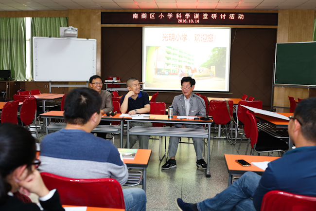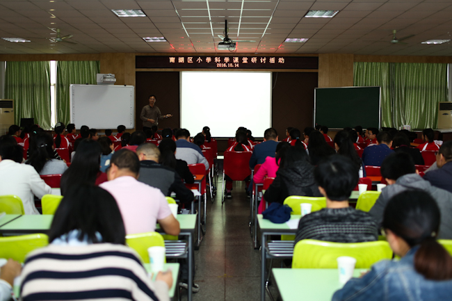 10月14日,嘉兴市南湖区全体小学科学教师在南湖区光明小学举行本学期第二次教学研讨活动。本次活动目的是进一步研讨“学为中心”课堂教学转型实践,主题是“少教多学”。