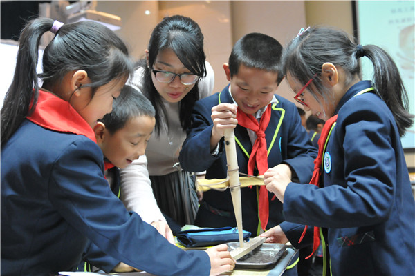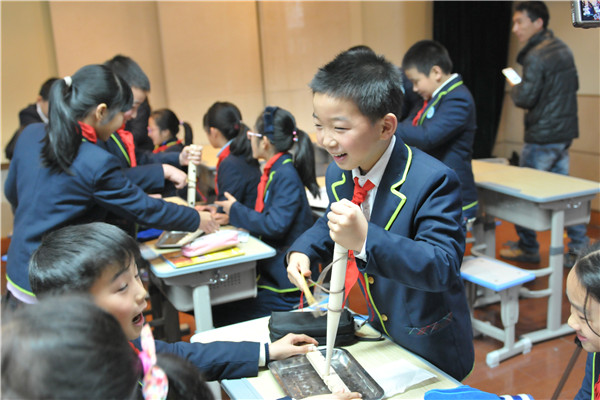 昨天有幸参加喻伯军名师网络工作室“拓展性课程建设”专题研训活动。上午听了三位老师的拓展课,分别是《魔杖》、《火》、《照明工具》。陈老师的《魔杖》,从哈利波特的魔法棒引入,逐步引导学生设计——制作——试验——改进——展示——讨论,整个过程注重对学生科学思维渗透!《火》这一节课,老师从原始社会出现野火的自然现象导入,通过让学生点火柴的活动,活动后让学生讨论怎么样点?如何让点燃的火柴不灭?,最后还让学生体验了砖木取火、打火石等取火方式,学生乐在其中!张老师的《照明工具》,张老师通过让学生对比各类照明工具,找它们的特点;体会照明工具的发展的科学性!最后通过一段照明工具发展史的视频,给所有在场的师生有一种穿越历史的感觉!三堂课都是围绕着“火”的主题开展拓展课程,给在场教师们很好地展示!下午聆听了徐春健、刘晋斌、杨春晖、喻伯军等六位专家的讲座及点评,让我说活颇多,对我以后开展拓展性课程起到了指向性作用!