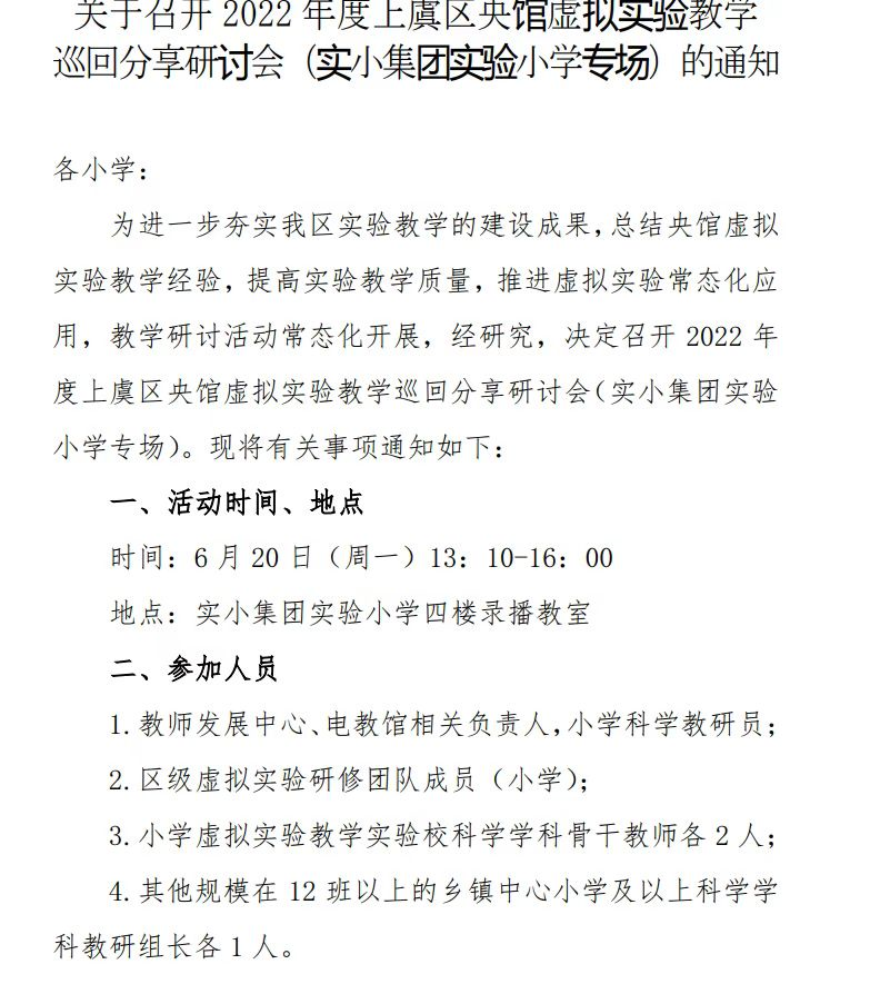 参加区央馆虚拟实验教学分享研讨活动——实验小学专场