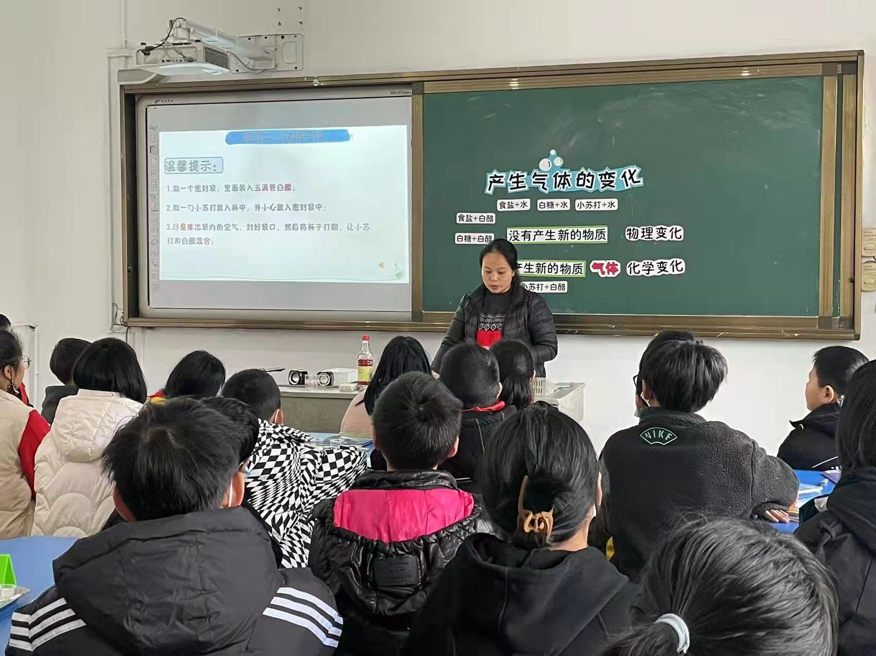 蒋老师事先让学生带了自家厨房的一样东西,引领学生通过对这些物体的观察和描述,区分物体和物质,知道铁,塑料等是物质。在物质的变化这一部分,蒋老师细心地引导学生科学严谨地观察,让他们充分认识到这些物质发生的变化,为后面抛出物理变化和化学变化做准备。