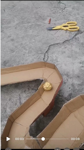 周末布置让同学们回家制作过山车轨道,除了利用积木拼搭,同学们还能想了用陶泥、废弃纸板拼搭出轨道。