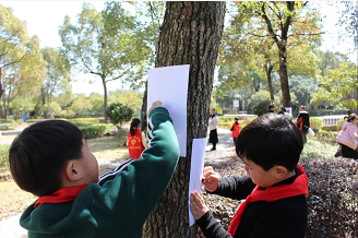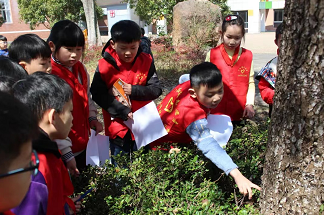为了迎接植树节,趁着阳光明媚,我带着我们班的小朋友们去认识校园里的植物。 同学们观察了叶子,拓印了树皮,还寻找生活在草从里的小动物,开心极了。
