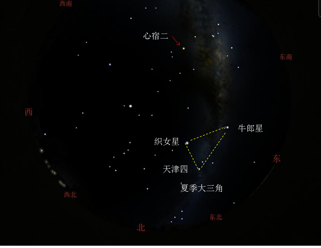 夏季大三角出现在南面的天空,我们一般是面向南观察