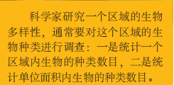和旧教材相比的不同之处,统计单位面积内生物的种类数目在以往的教材中是没有的,但他的意义何在?一平方米首先受选择的区域影响很大,二是按照教参说的反应出一个区域内的生物种类丰富程度,但是丰富程度也没有一定的标准。[img=110,0]http://lt.zjxxkx.com/tools/ajax.aspx?t=image&aid=158249&size=300x300&key=[yLrSnFpIsdYyR4C4TisVQ==&nocache=yes&type=fixnone[/img]