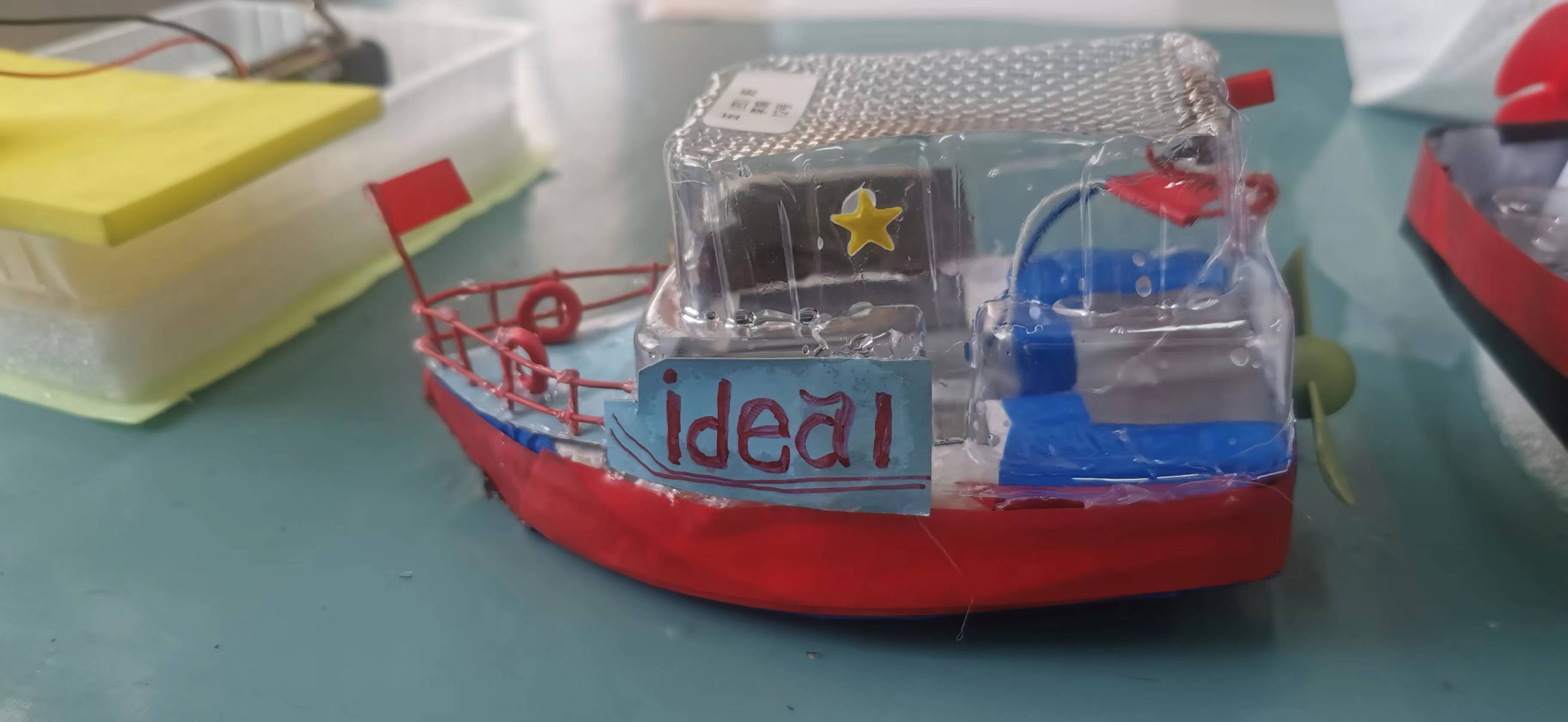 这个是班级里最调皮的一个孩子做的,船的形状特别有意思,还有装饰,有船舱,有动力系统。(2022/4/18 21:48:43 上传)