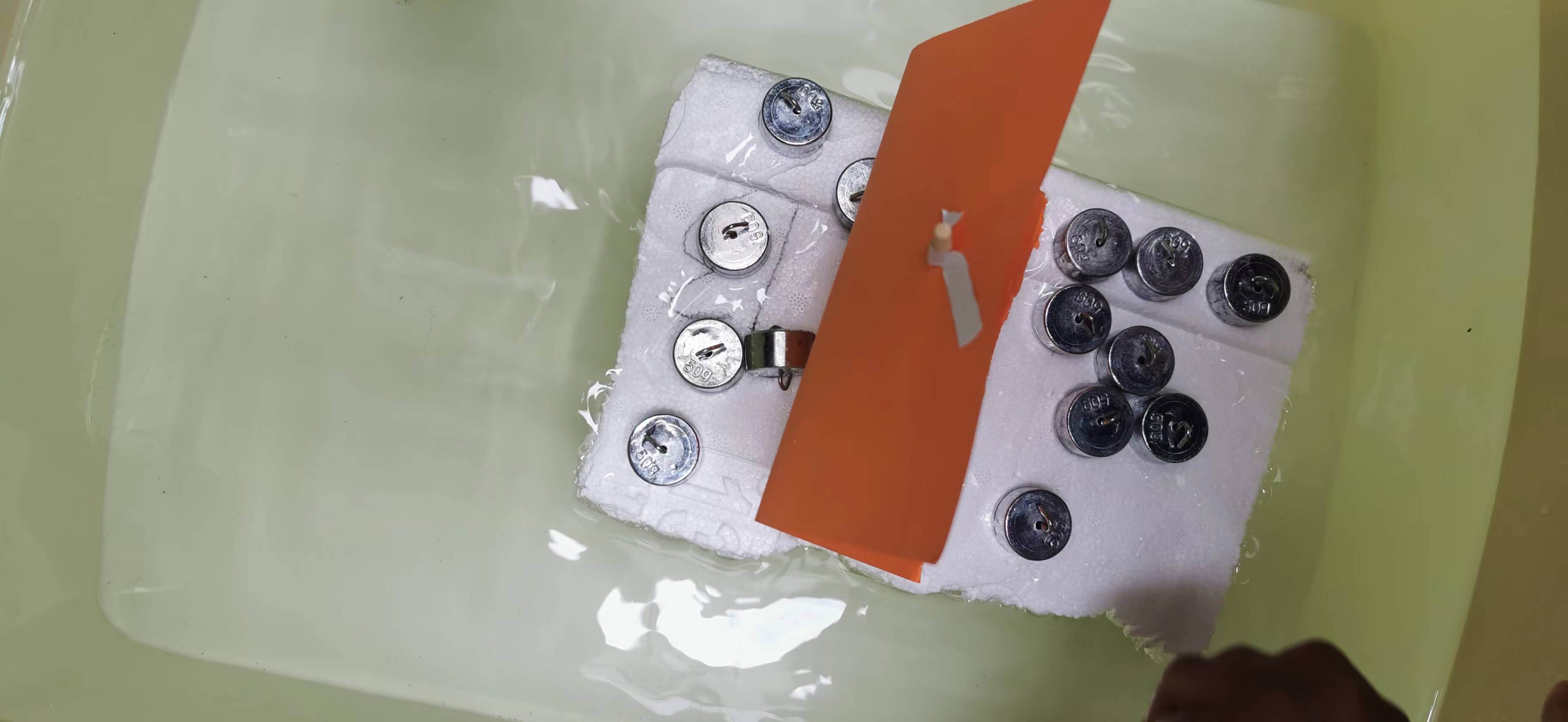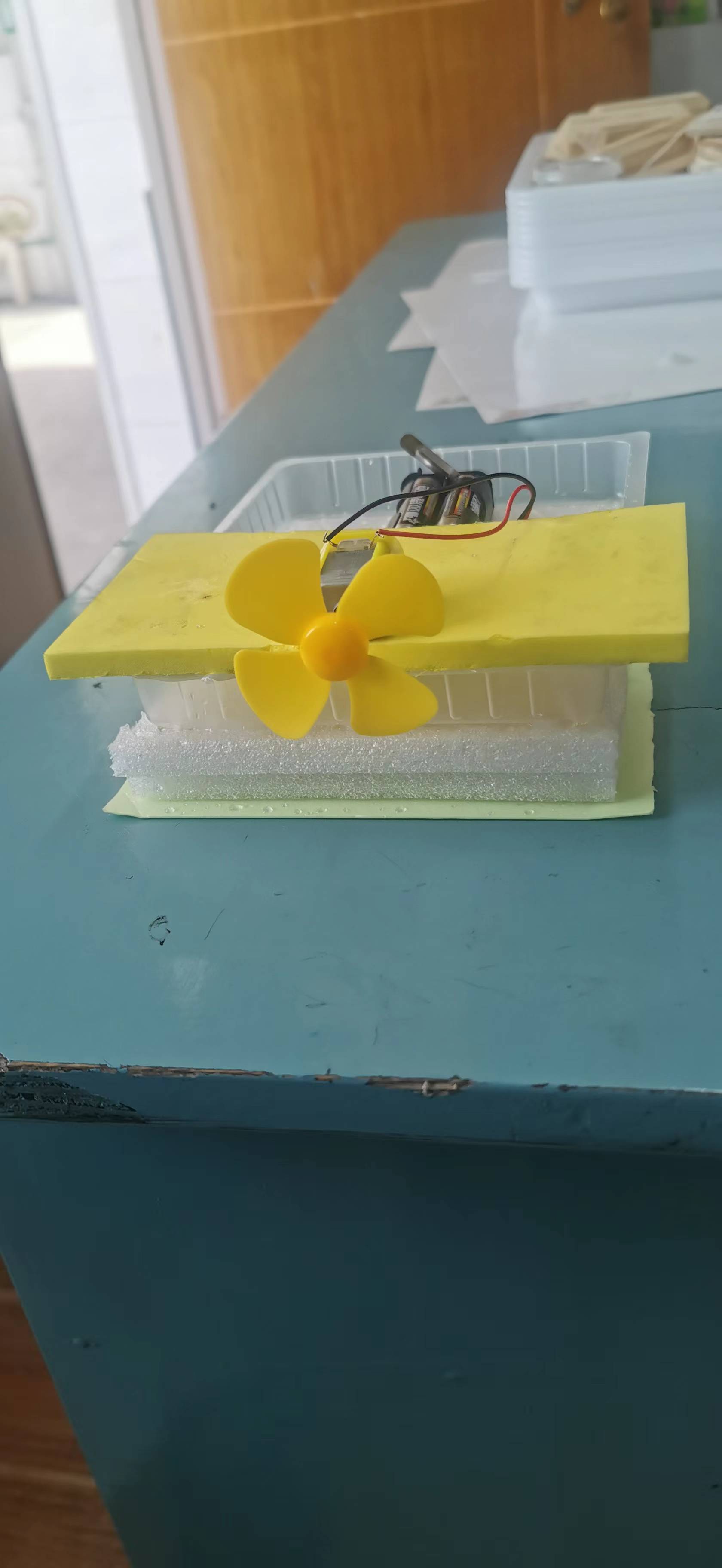 这艘船学生家里没有动力系统,直接拆了家里的小型风扇,下面用了大块的泡沫,载重量特别的大。(2022/4/18 21:48:43 上传)
