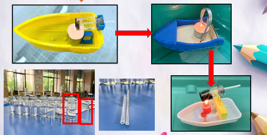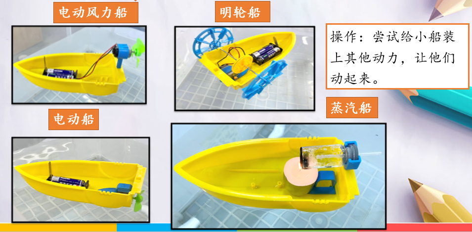 为了突出本课的学习主题,可以弱化对动力装置原理的解释和讨论,直接为学生提供简易模型船和半成品的动力装置。