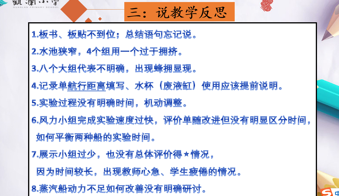 3.小组讨论总结:安装调试中获得的经验及发现的问题。(若有部分小组实验失败,一起观看蒸汽船航行视频)