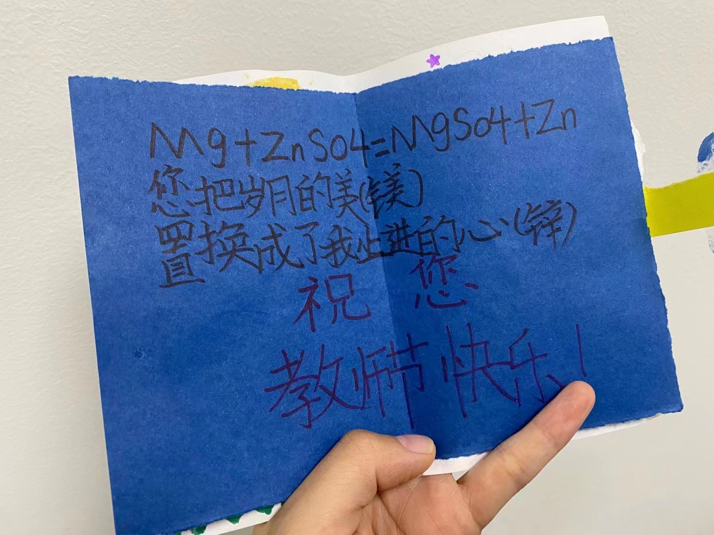 学生写的贺卡,化学方程式都用上了