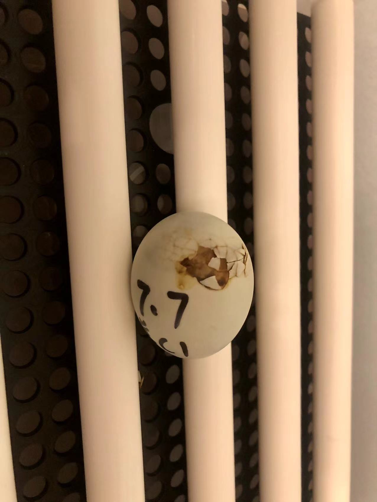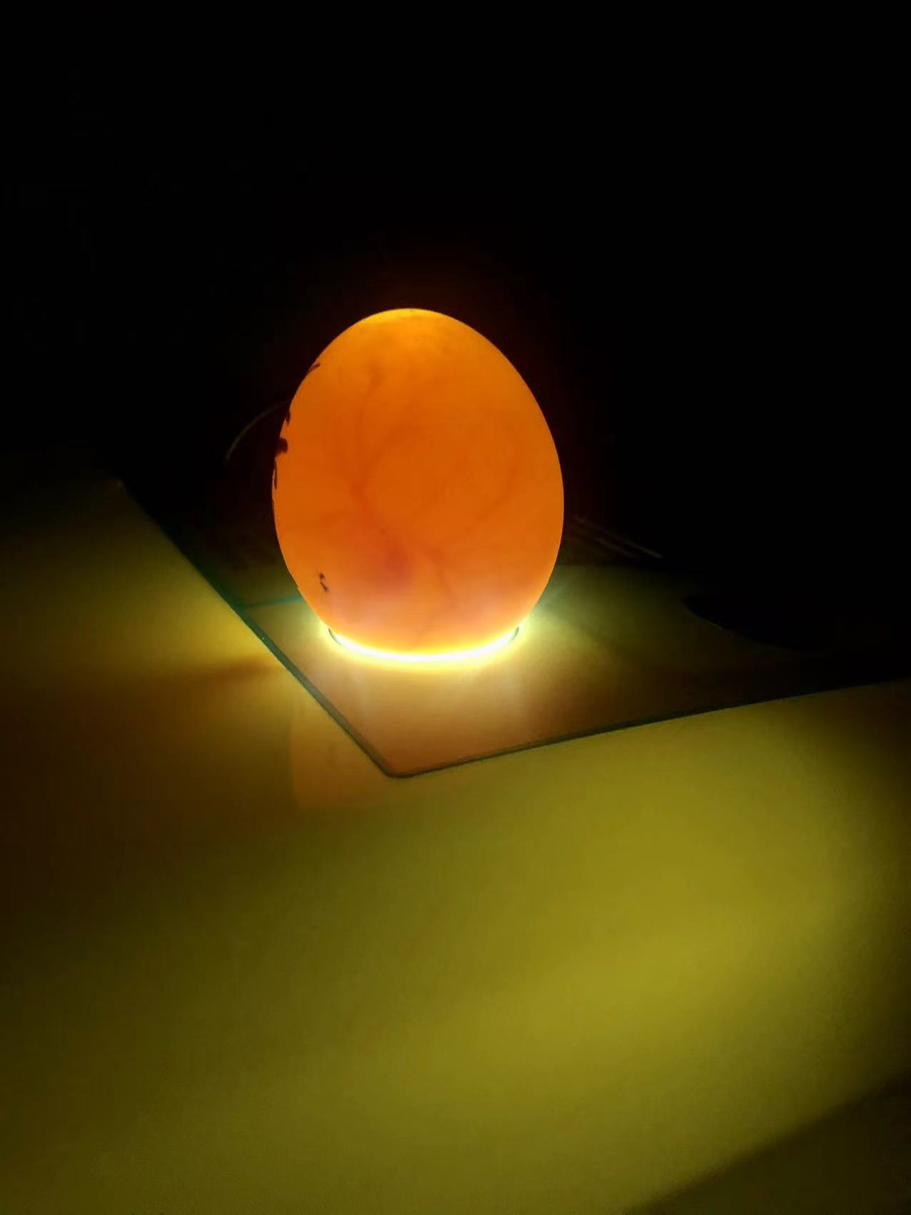 把蛋放在桌面上,整个蛋在晃动,里面的小生命动得真起劲!可惜我视频不会传