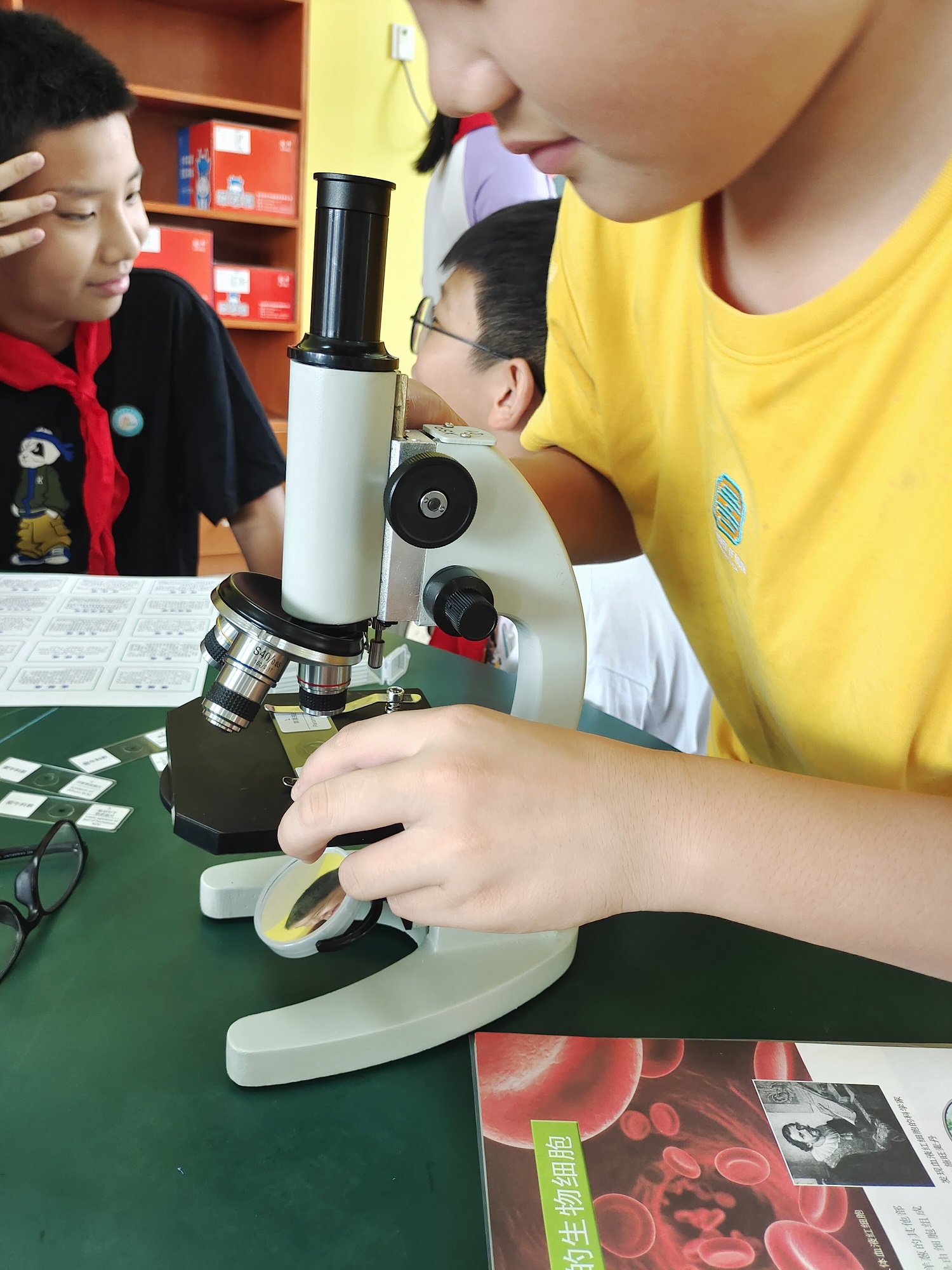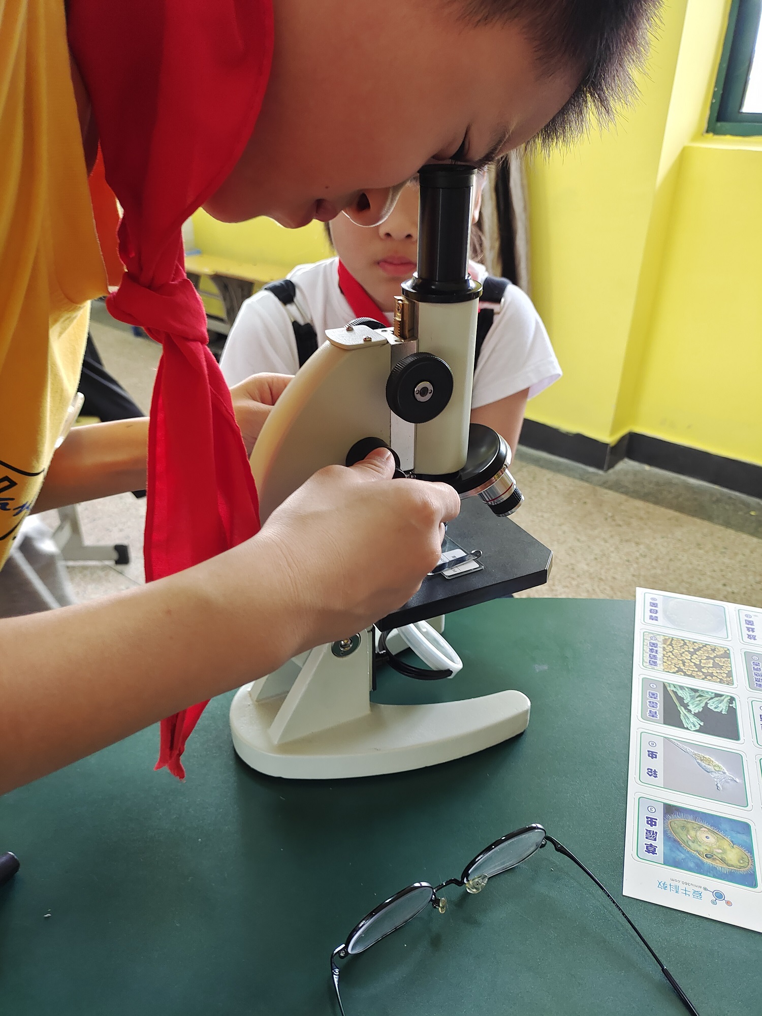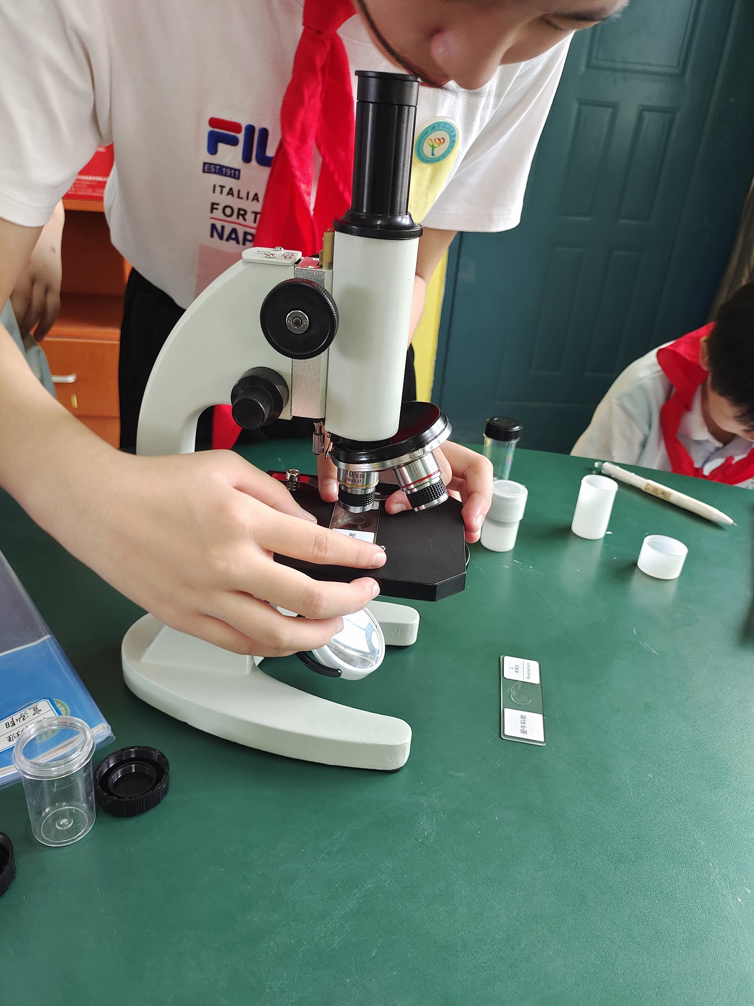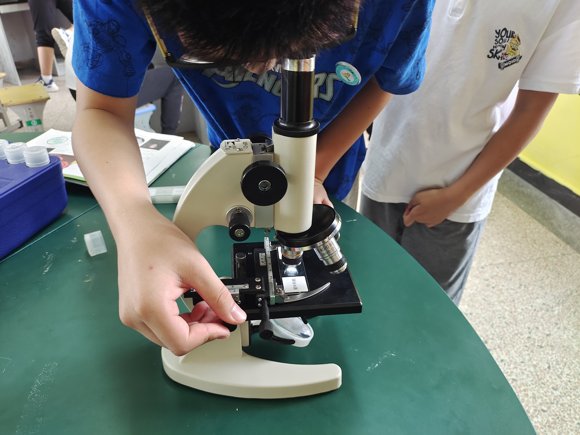 ②上片的步骤需要用到,注意上升镜筒,将临时装片用压片夹夹住,随后下降镜筒开始移动装片位置并调焦。