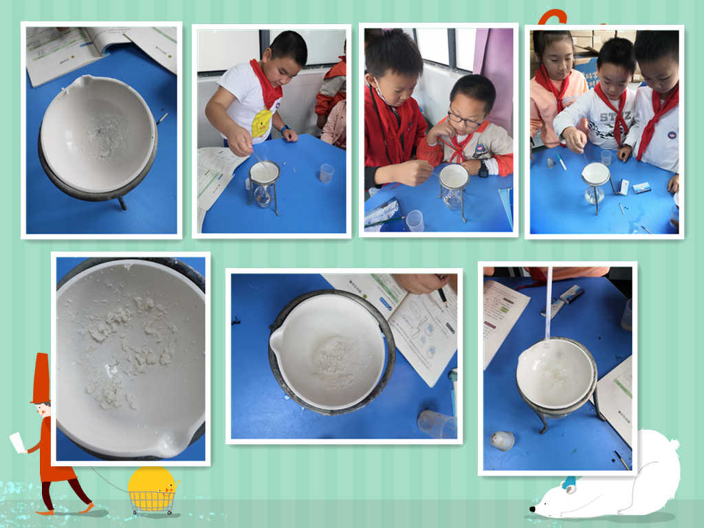 亮点:学生能正确读出不同阶段的温度,直到100摄氏度;大部分组能完成整个实验,实验过程能表达清楚;大部分的学生能正确使用酒精灯。