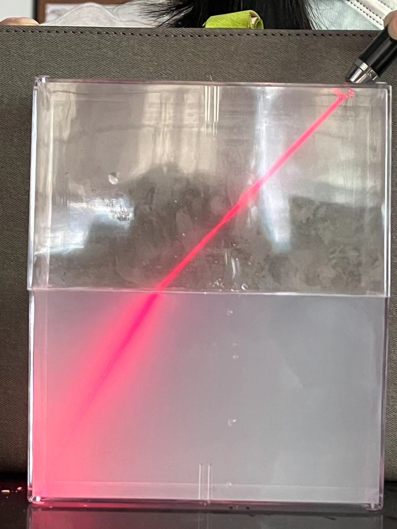 丁达尔现象 之前在水中加牛奶 加墨水 后来发现 加饮料(尖叫)也有很好的效果
