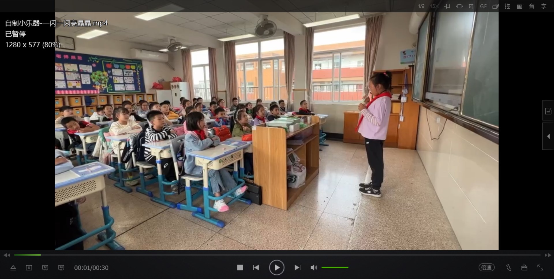 另一位小朋友吹奏了《一闪闪亮晶晶》,吹着吹着孩子们也情不自禁哼唱了起来。