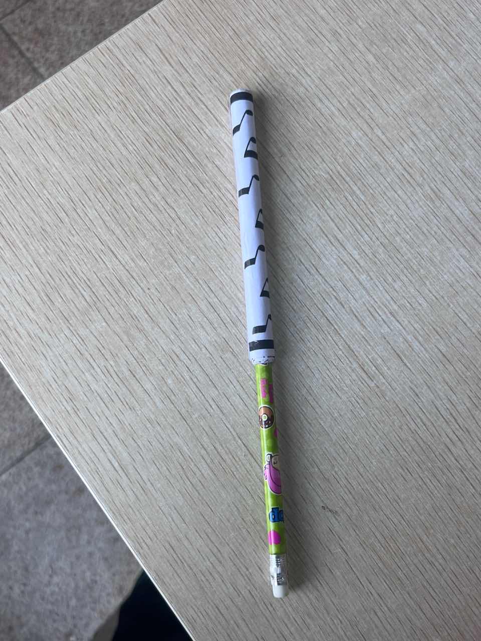 小朋友利用一支铅笔、废弃的纸条,以及胶带制作出了一个乐器。