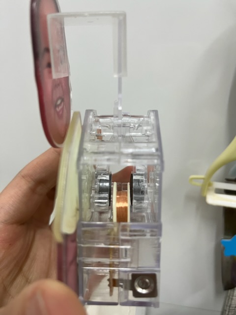 在抖音上老是刷到这个摇头摆件,觉得好玩就买了一个,到了之后发现这就是一个简单的电磁铁,装上电池,缠绕的铜丝有电流通过,产生磁性,使得铜线两端的磁铁开始转动。