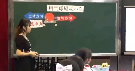 孙老师结合学生平时教学,引导学生通过玩气球,引出反冲力