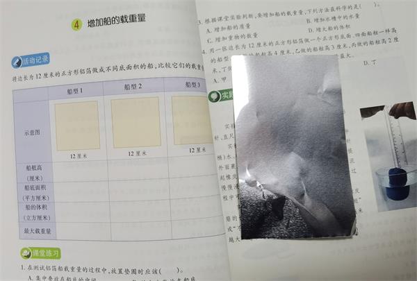 五年级《船》单元,第二课《用沉的材料造船》和第三课《增加船的载重量》的学习中都需要使用到铝箔,根据教材最好是用12cm*12cm大小的正方形铝箔。学生学具袋中是有一张铝箔纸的(如下图),能够利用起来那是相当好的器材,但是量了一下长约12.5cm,宽约8cm,是长方形的。使用这个材料与教材不匹配,这对教学产生了很多影响;如果不使用,这批材料就将白白浪费。强烈建议学具材料可以改成12cm*12cm的,大家怎么看?