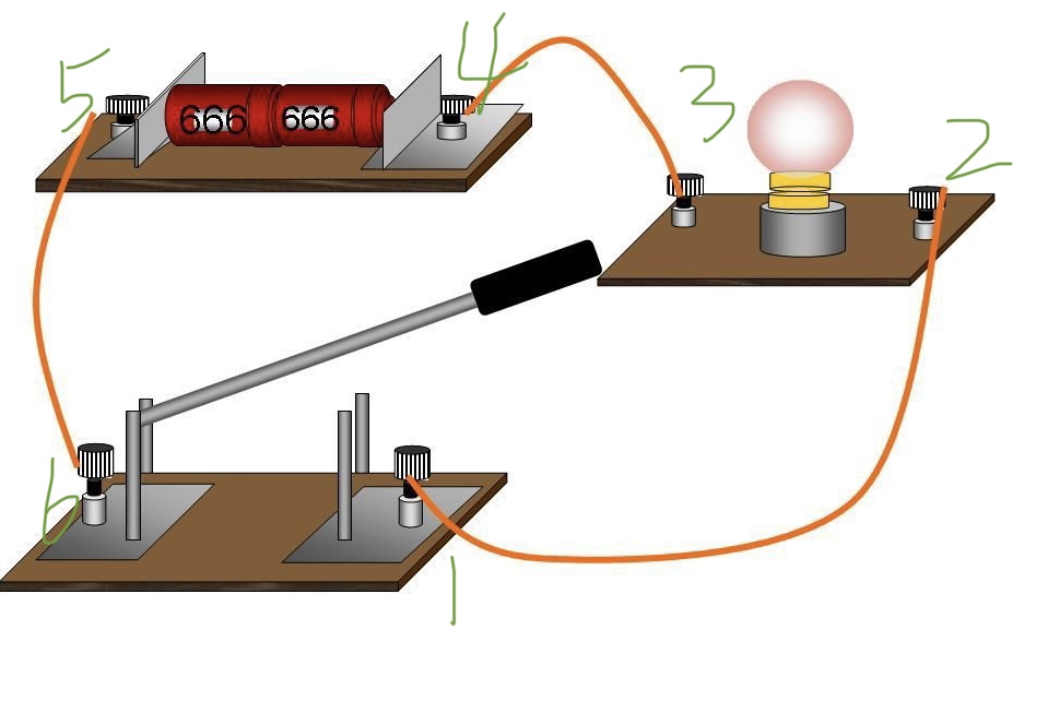 第三:用检测法检测“干电池是否有电”,只需把待检测电路中的电池取下,替换检测电路中的电池即可。但如果要检测“电池所在电路是否良好时”,即上图中4和5之间的电路,则需让电路检测器的电池“正极”相连的接线点去接触被检测电路电池的“负接线柱”。同理检测电路中电池“负极”相联的接线点接触待测电路电池的“负接线柱”。否则,相当于把两节干电池的正正极相连,负负极相连,那无论电池所在电路是否良好,检测灯泡都不会亮。
