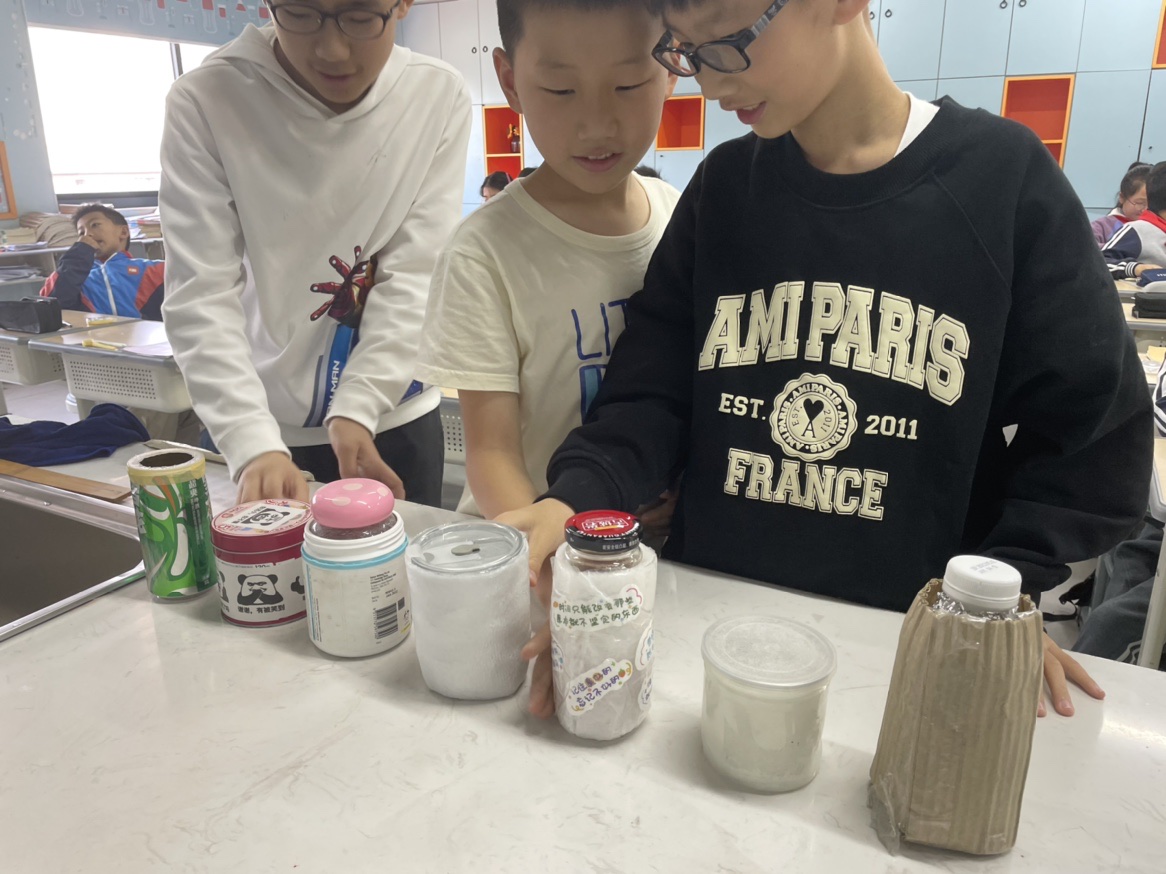学生自己设计制作一个保温杯,测试,比一比谁的保温效果好,对学生的学习积极性和学以致用的能力培养非常好!