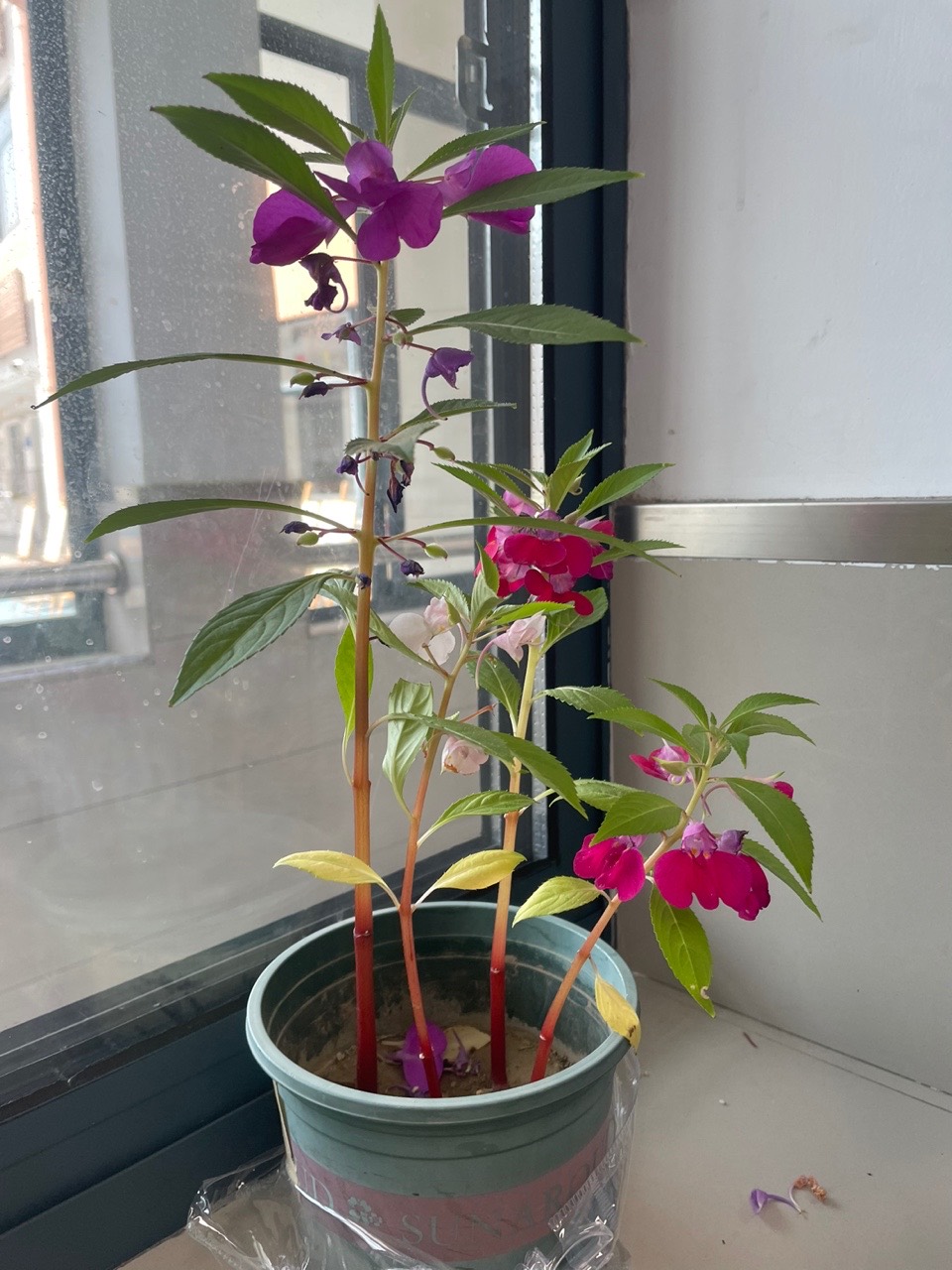 家养的凤仙花真的好小就开花了,记得印象中野生的是很大很大的一株植株,上面还有大大的大青虫。
