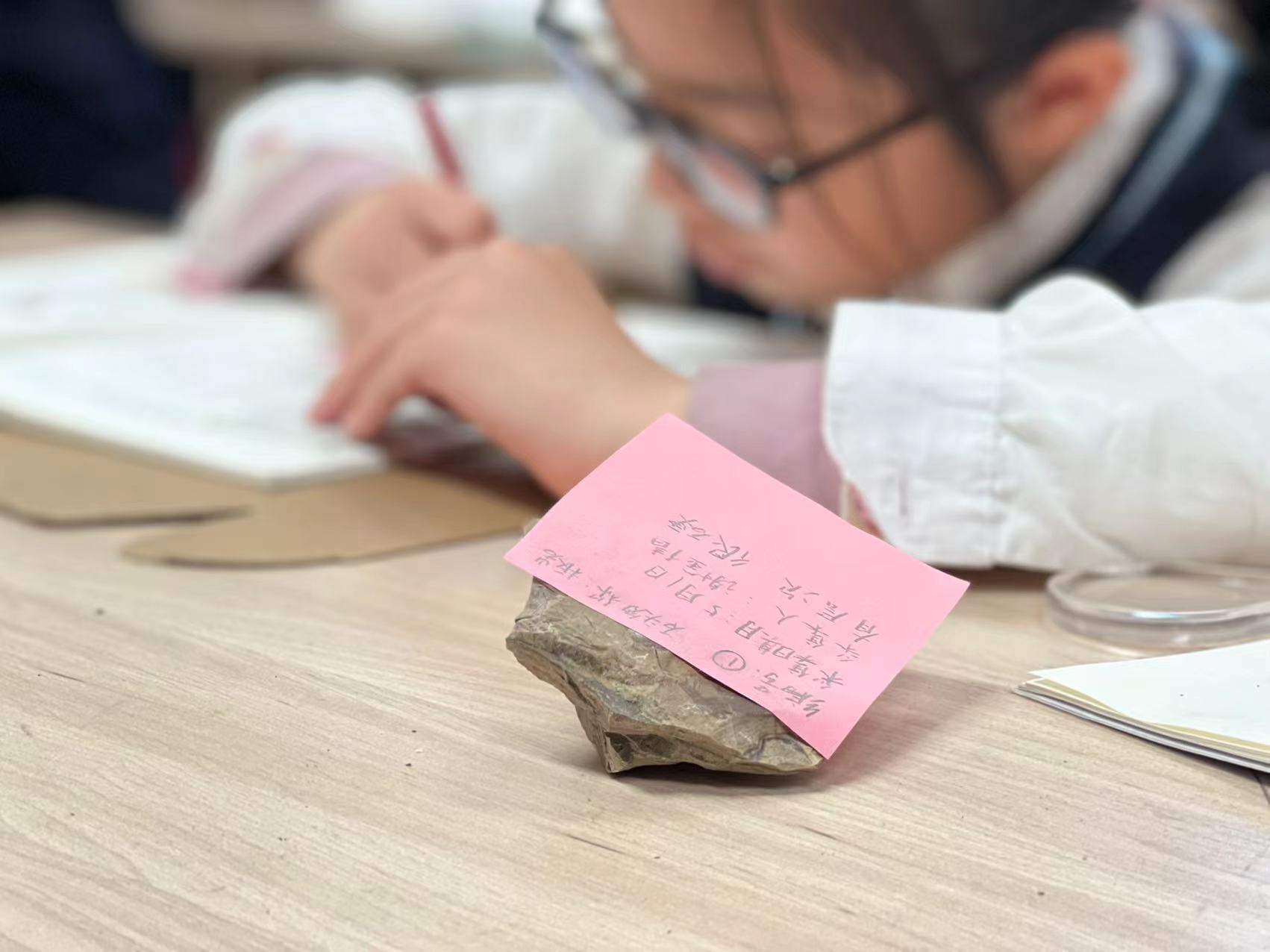 一起学习了制作步骤和标签制定之后,大家可以选择自己喜欢的岩石进行鉴别观察。但是一节课的课堂时间肯定是不够的,所以这个任务会延到课后。为了提高这个岩石矿物标本盒的完成率,我主要采取了以下措施: