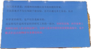 探究的本质是提出问题和寻找问题的答案。寻找答案,不仅仅局限于做实验,还可以通过其他渠道—-阅读。阅读和写作是科学家探究工作的一部分,有研究发现,科学家和工程师有一半以上的时间在读和写,读和写是科学探究的重要组成部分,这个模式过去七十年来了都是如此。