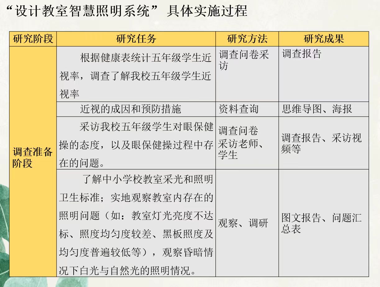 本次项目化学习激发了小组成员的学习积极性,强调教学要与生活密切相关。日常学习中,我们常常可以感受到做眼保健操不认真、身边的“小眼镜”越来越多、教室内一体机反光严重、窗帘拉合困难等问题,如果我们教室内的灯光变得更智能、窗帘、窗户变得更智慧,不仅实现手动调节亮度,还能根据光照强弱自动改变灯光亮度和窗帘的开合程度,就可以有效避免近视的发生,营造更加舒适的学习、休息环境。从学生生活中的遇到的实际问题入手,激发学习兴趣和积极性。