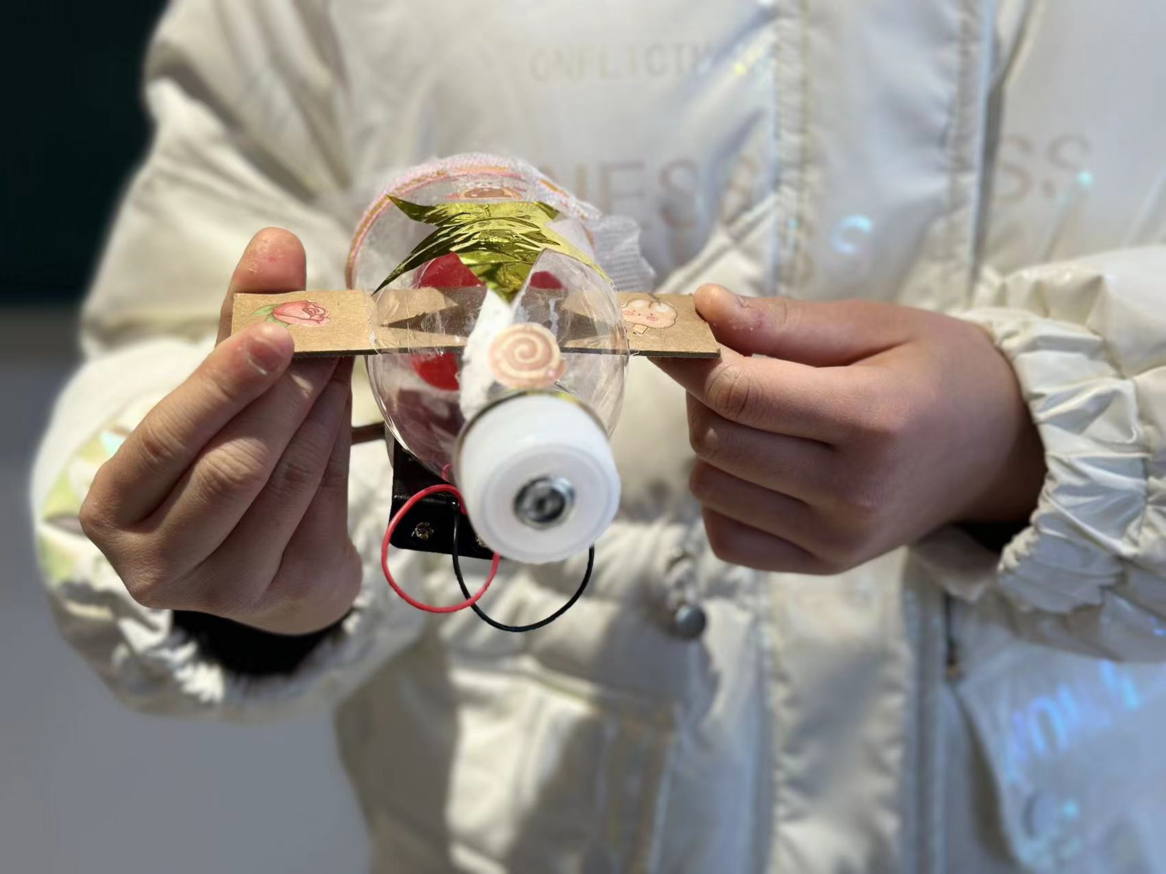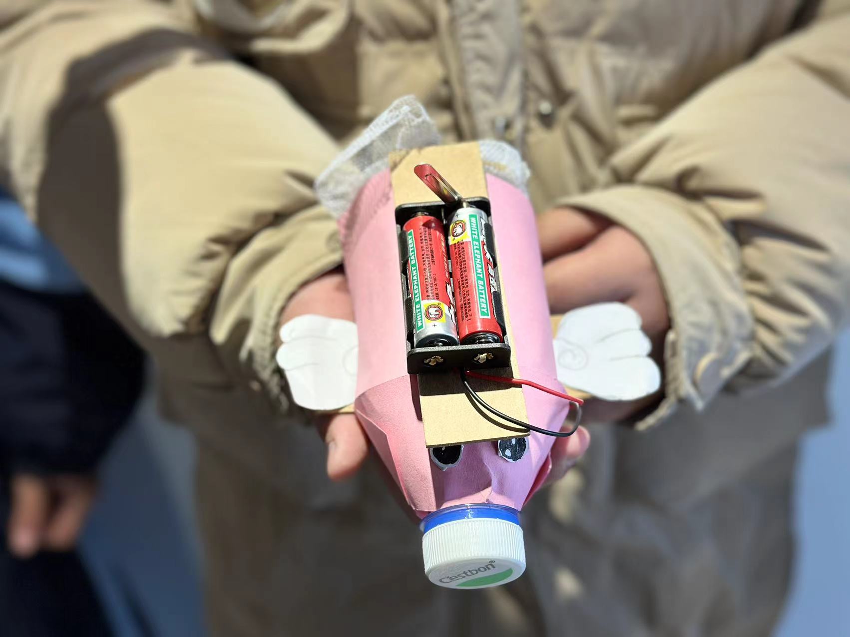 自作吸尘器项目看似简单,但实施过程中,好些孩子都发现吸尘器风向反了,反而没有吸尘效果。制作成功的孩子继续考虑各种因素如瓶身长短、电池数量、电动机种类、风扇叶大小对吸尘器吸纸、吸尘效果的影响,并提出自己独特而有效果的解决方案,多次尝试不同方法并进行改进调整, 最终孩子体验成功制作出符合预期效果的吸尘器的喜悦。生活中处处皆有科学,希望同学们通过项目化学习,提高科学兴趣,希望每位参与项目化学习的孩子,学会用科学的眼光观察世界,用科学的思维思考世界,用科学的语言表达世界。