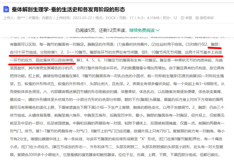 蚕的身体有13个体节,分为头部、胸部和腹部三部分。胸部有3个体节,每一个体节有一对足,共3对,能协助口器把持桑叶。腹部有10个体节,5对足,其中,第3、4、5、6、10节上有腹足,可以帮助身体运动。沈菲 发表于 2024/4/8 22:38:32 [url=http://lt.zjxxkx.com/showtopic.aspx?to润羽 发表于 2024/4/9 7:44:35