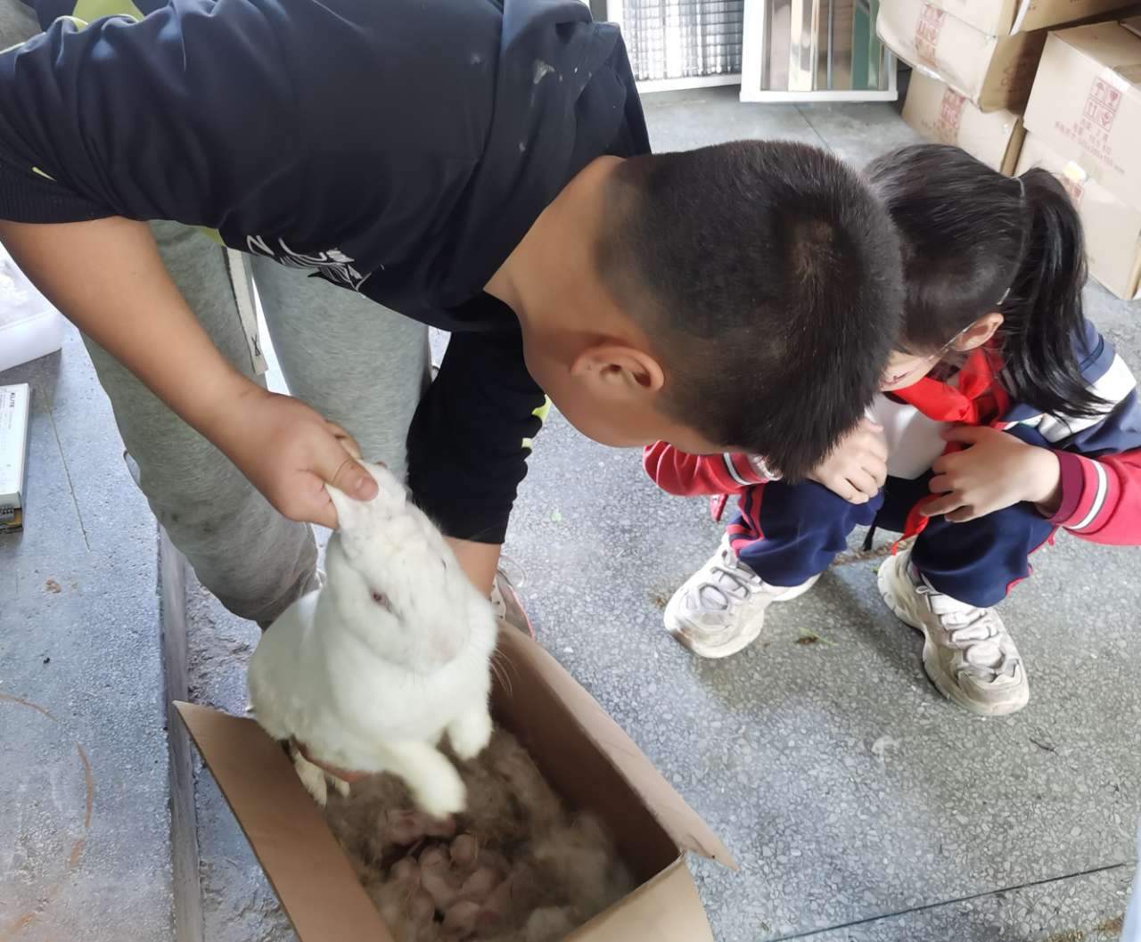 看着他们娴熟的动作,我觉得我所做的一切都是值得的。最起码在这个时刻,他们的本领比我大,会分辨生小兔的那只母兔,会喂小兔。科学实践基地,学生在饲养鸡鸭兔和采摘水果过程中真正学到了知识,学到了本领,真正践行了陈鹤琴的活教育,我所付出的一切都值得……