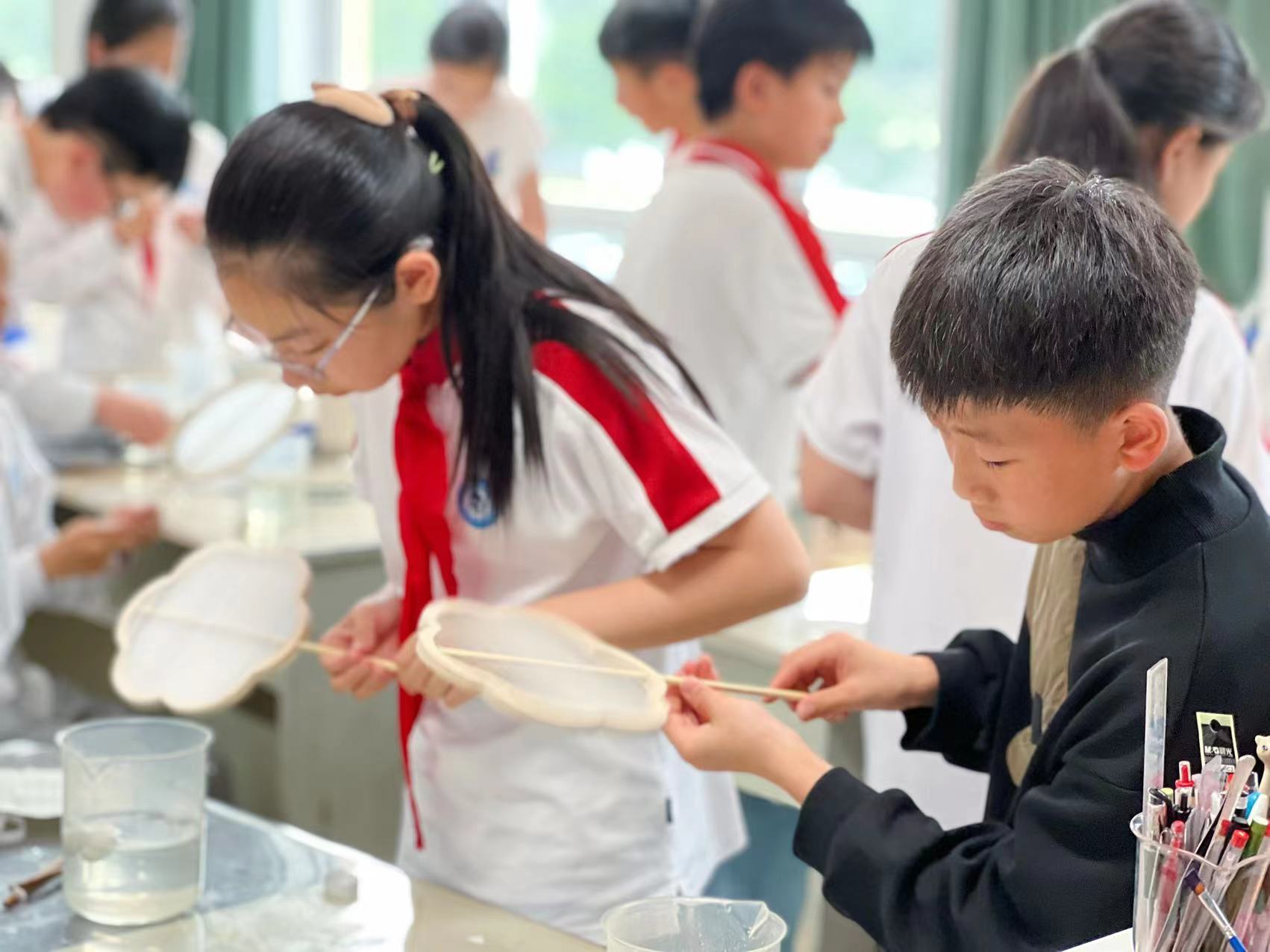 为了保质保量完成一把精美的蚕丝扇,活动前货比三家采购了扇骨、蚕茧、贴片、珍珠链、珍珠贴片。跟孩子们约定好,吃完午饭便可来学校制作,再跟英语老师换课,留出最后一节课加上托管,所以这是一节时长达4小时的班会课。所有的材料都是孩子们用平时的积分所兑换的,依据他们的积分拥有情况和审美自由兑换。
