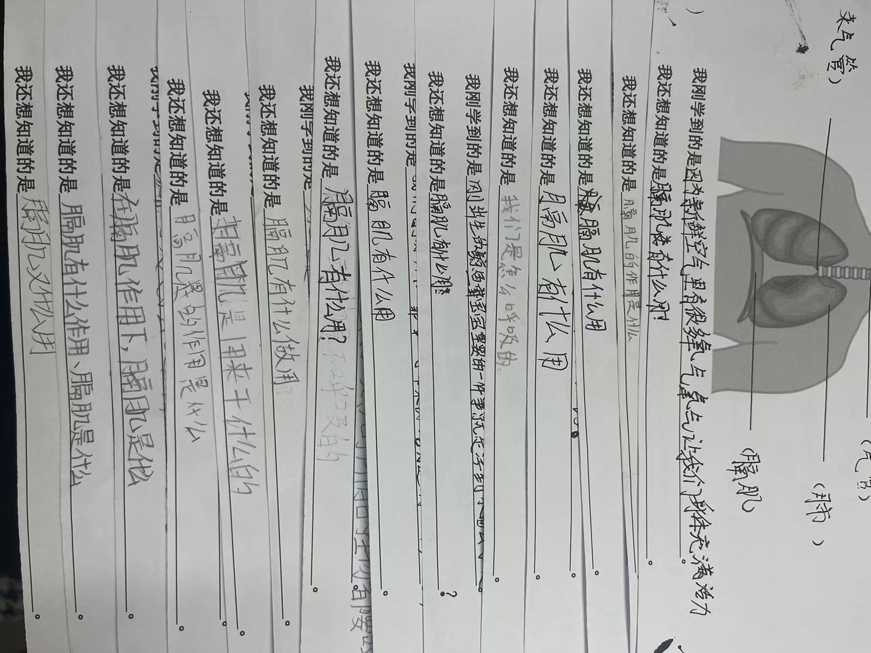 例如在上感受我们的呼吸这一课时,学生就提出了很多问题,比如膈肌有什么用?这个问题本节课就可以帮助孩子们解决到,呼吸有什么用?如何判断肺是否健康,身体里除了肺还有哪些器官?