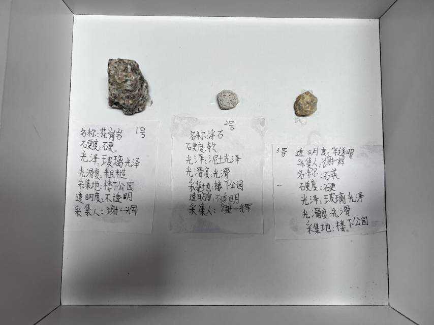 原本平平无奇的一块石头,经过一个单元的学习,成功唤起学生探究学习的欲望,最后做一个自己的岩石标本就是学生学习热枕的体现。