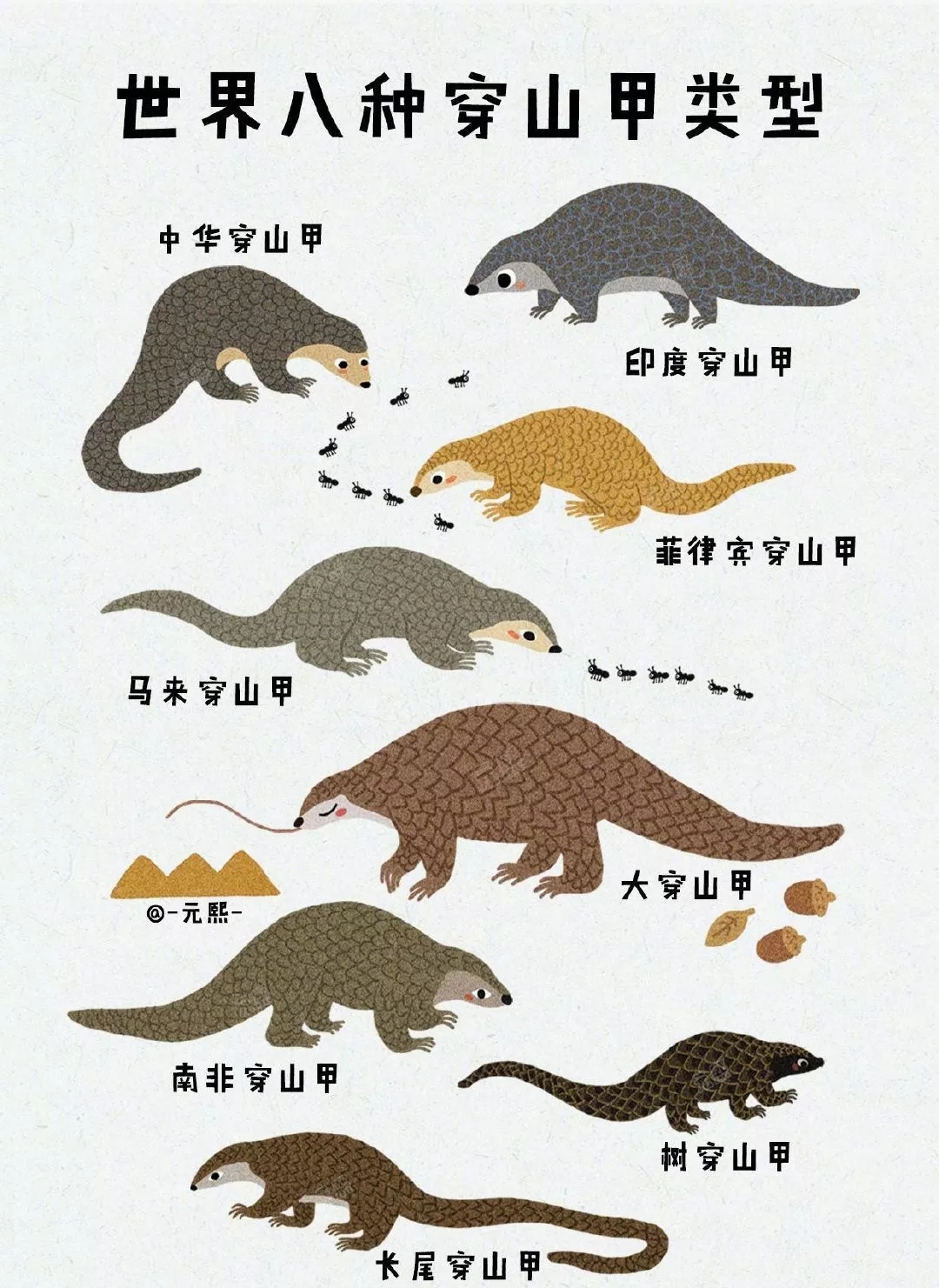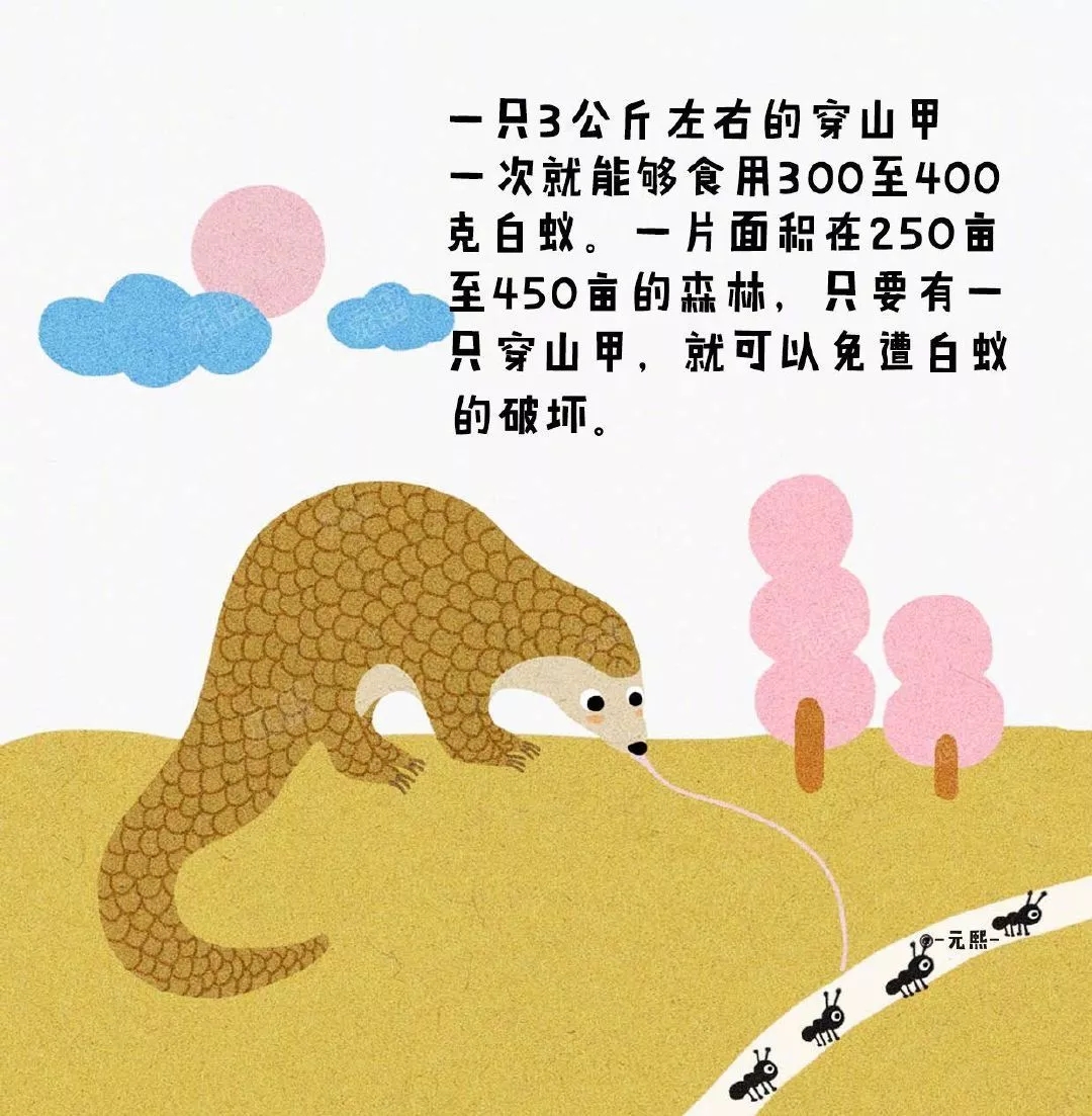 初生仔穿山甲体重为90-130克,闭眼,无鳞,色浅白色,半月龄开眼;1个月以后增重200-500克,鳞片渐次角化,多为黑褐色;2个月后可随母穿山甲外出觅食;外出时,幼兽伏于母兽背尾部。以蚂蚁和白蚁为食,也食昆虫的幼虫等。6个月仔兽体重可达1500-2000克,可离开母兽独立生活。