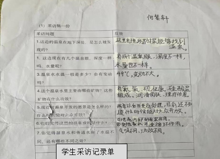 当地有温泉资源的话,可以研究温泉的形成原因、温泉水对地表的影响等,很宝贵的教学资源