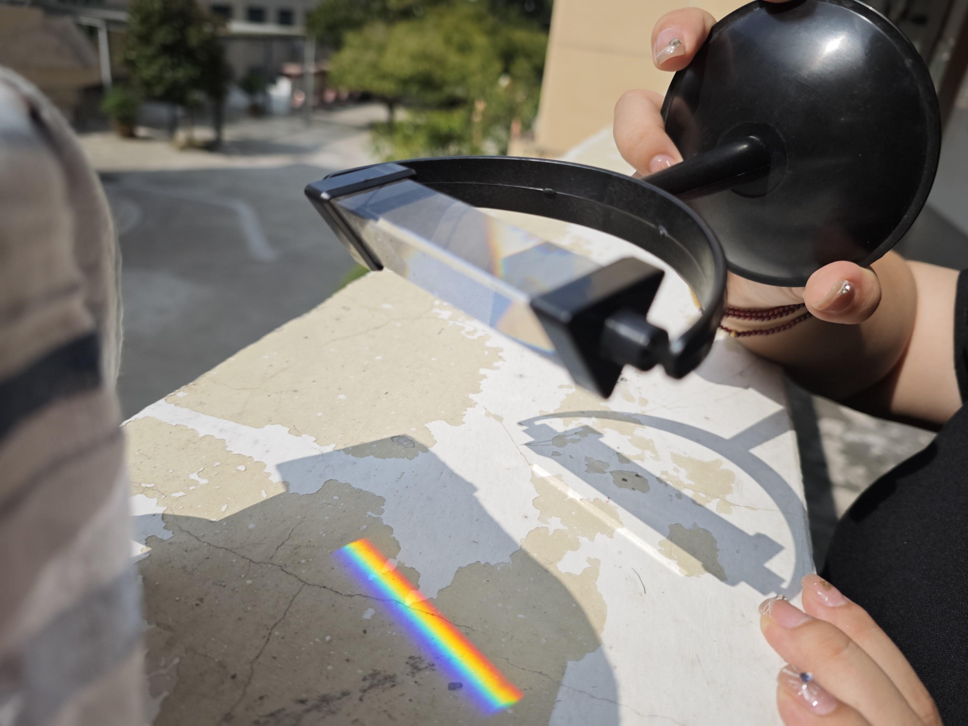 好看,同时也疑惑,为什么不能清晰看到七色?上三棱镜一课学生也有类似的疑问
